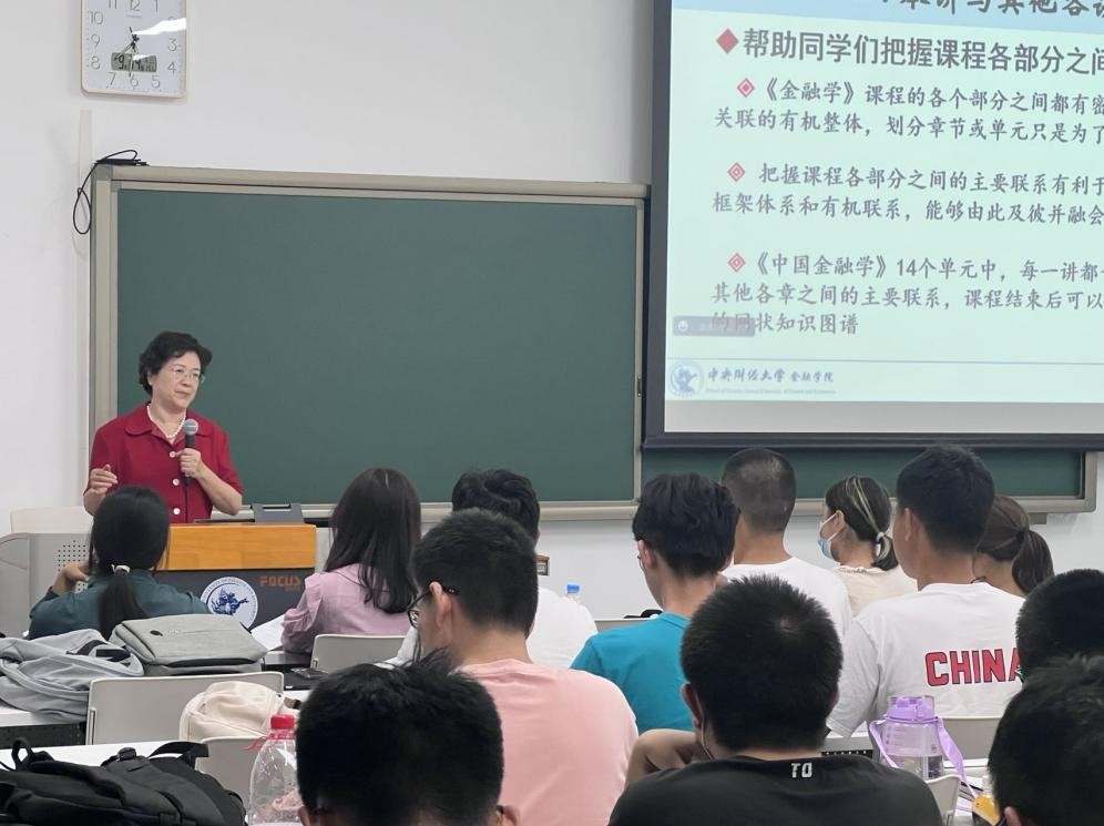 《中国金融学》教材主编、国家级教学名师李健教授开启了课程的第一讲。在绪论部分,她为同学们详细讲解了“金融”的词义考证与界定、社会主义市场经济中宽口径的金融范畴、金融学科的特点及其与相关学科的关系、《中国金融学》课程的框架构成以及学好《中国金融学》的几点建议。她强调,绪论是《中国金融学》课程的总览,是理解后续各章内容的钥匙,可以帮助同学们快速了解金融学科的特点及与其他学科的关系,熟悉整个课程的逻辑框架体系,把握后续各章的定位及彼此关联,有利于后续各章节的学习与知识储备。