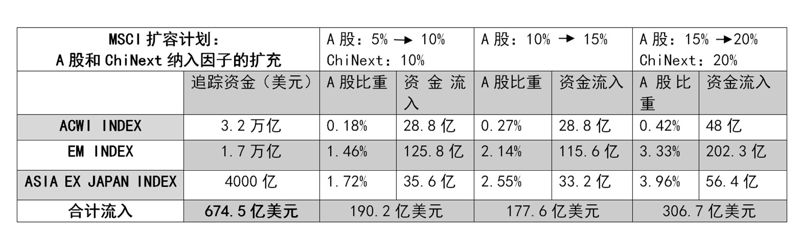 附表:预计MSCI扩容计划引起的被动性资金流入