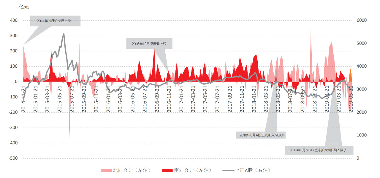 第二,资本市场的扩大开放,将会增大跨境资本流动的波动性。如前所述,自沪深港通启动以来,从香港流入A股市场的资金有显著增加。但笔者也注意到,这一开放安排也为境内外资金短时间内撤出A股市场提供了便利。从图2提供的数据不难看出,通过“陆股通”北向的资金,在2015年7月初、2018年10月以及2019年4月至5月等时段,均发生了集体大量撤出A股市场的行为,而且经常是在短时间内大进大出,波动剧烈。