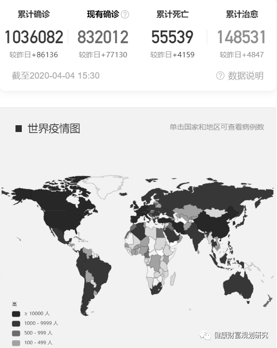 截止到2020年4月4日,全世界累计确诊人数已经超过了100万人,汇集的各种数据我也终于可以做个较详细的分析。整体的分析形成三大块,疫情趋势、资源与管控措施,传染机制的图数据分析和模拟以及基础疾病与新冠肺炎,整体包括了经济学、数据分析以及微观健康以及临床医学数据,转载数据请标明出处。